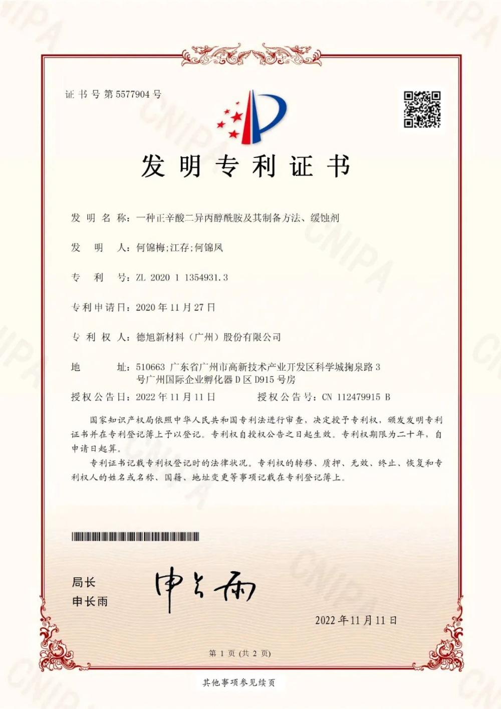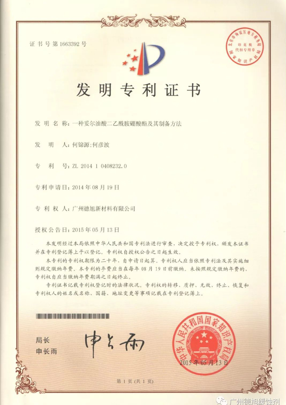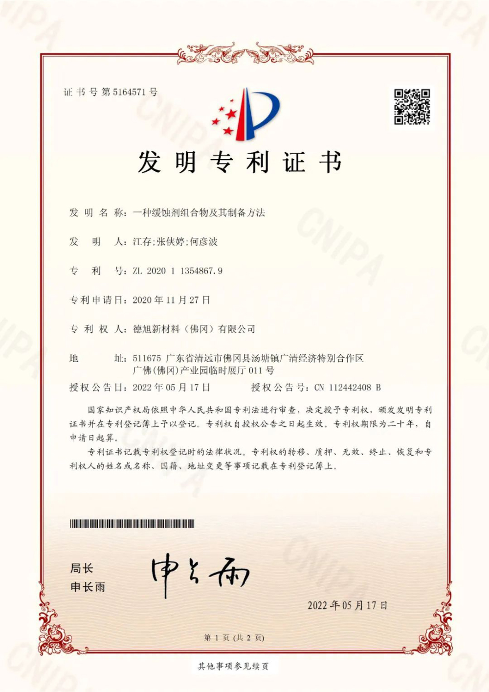 德旭新材料(廣州)股份有限公司成立于2012年,坐落于國內新材料領域創新集聚區的廣州高新技術產業開發區核心位置——廣州科學城,是一家集研發、生產、銷售于一體且擁有自主知識產權的專精特新企業。長期專注于金屬材料的防腐蝕研究與創新,為汽車與船舶、航空航天、半導體及3C電子、新能源、水性防腐涂料等領域的金屬防腐蝕提供產品和解決方案。同時也服務于工業潤滑、金屬表面處理、工業、商用和民用重油污清洗和益智玩具等行業。公司產品獲得BASF(巴斯夫)、HP(惠普)、漢高、美泰、MOOSE、中國船舶、中國機械總院、安集、匯川、三環、晨光等國內外知名企業的青睞。